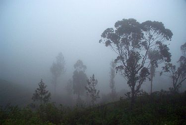 Auf der Weiterfahrt mit dem Zug geht's durch den Nebel-Bergwald!